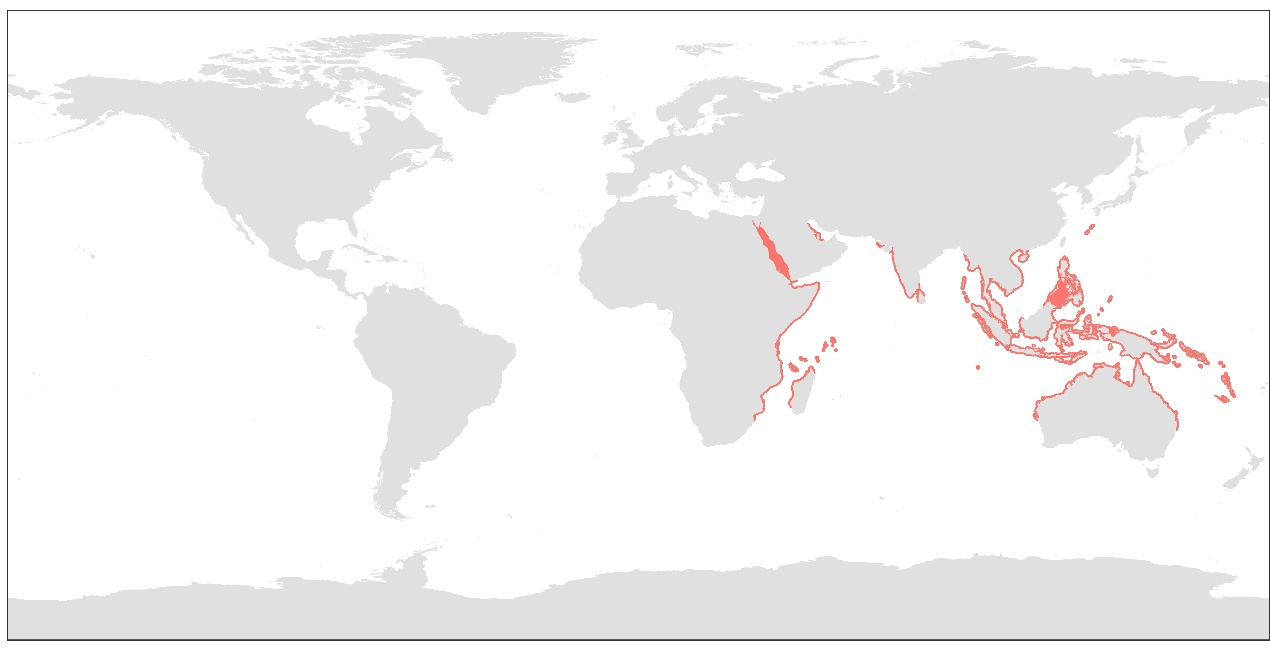 圖1 儒艮地理分布范圍(數據來源:國際自然保護聯盟瀕危物種紅色名錄)